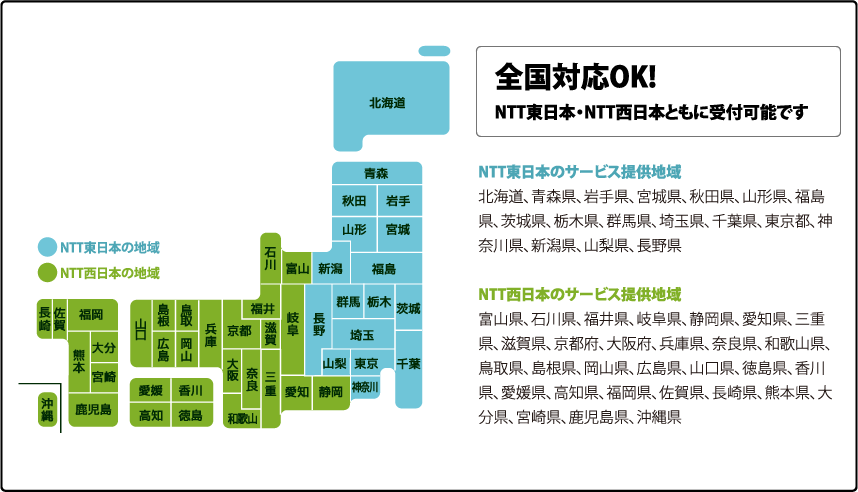 ※以下は2024年2月1日時点の情報です。NTT東日本・NTT西日本のサービス提供地域がご不明な点は公式サイトにてご確認ください。